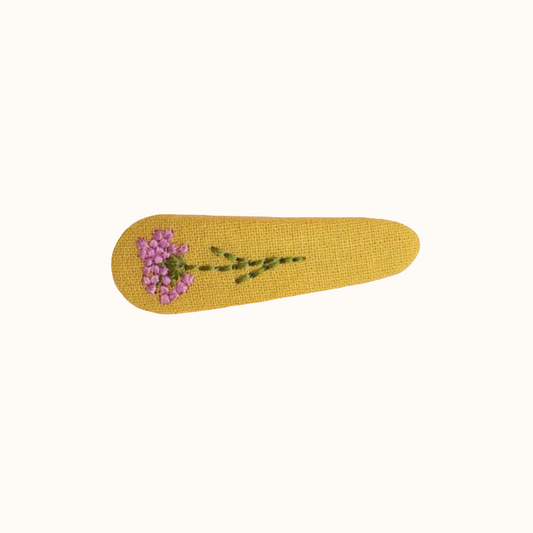 'Embroidered Flower' Hair Clip in Mustard and Lilac