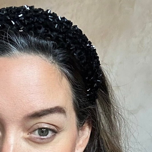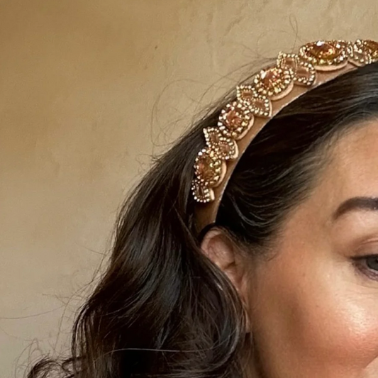 'Eva' Velvet Tan Bow Claw Clip with Pearls