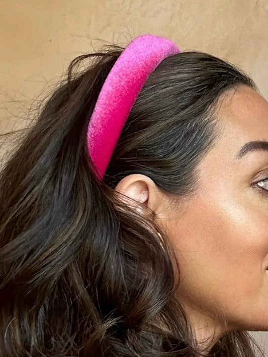 Padded Velvet 'Florentine' Headband in Rose Pink