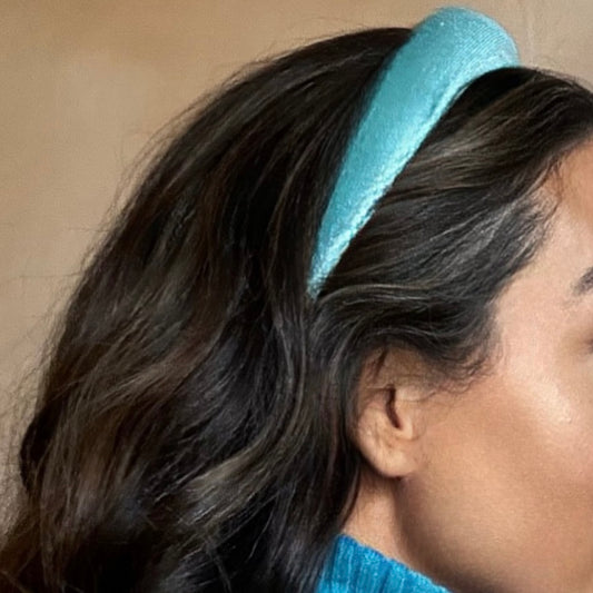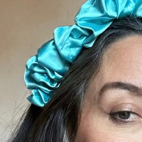 Ruffle Satin 'Frou-Frou' Headband in Cielo